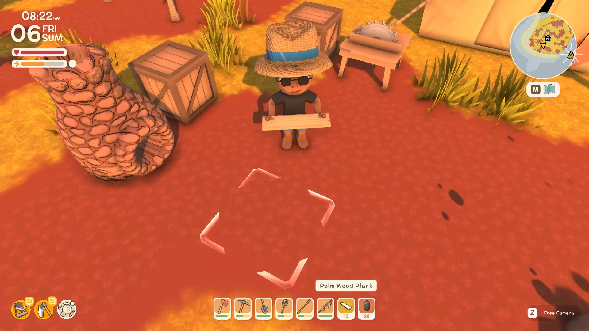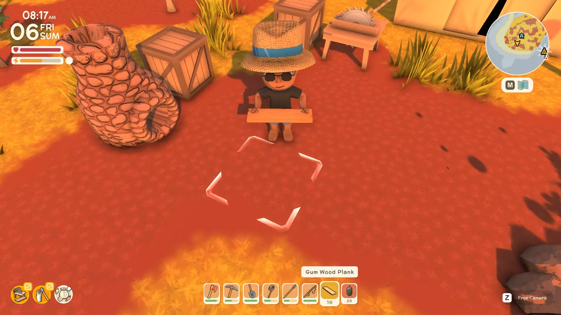 如何获取食物和资源!(将持续更新) - 哪里可以获得灌木酸橙用于烹饪和食用 - 如何找到并获取果冻 - 如何收集白蚁巢 如何捕捉昆虫和小动物!(陆地和水中) - 如何捕捉昆虫(飞行、爬行、跳跃等) 【更多信息请参见指南索引中的“所有昆虫类型信息”】 - 如何捕捉小动物(游泳、静止、隐藏等) 你可以在烧烤架上更快地烹饪(即将推出) 然后你可以在烹饪台上制作更精致的 meals(即将推出)更多信息可在指南索引中的【所有生物类型信息】中查看。 希望本指南对你有所帮助。 不确定如何在《丁卡姆》中高效度过每一天? 我建议充分利用一天中的每一刻,因为一旦入睡,丁卡姆的新一天就会开始。你可以通过观看一些我的短视频来了解如何最大化游戏体验,包括赚钱、获取资源、完成里程碑等。 - 记得收集食物 - 收集资源 - 进行一些狩猎/钓鱼活动 - 种植少量作物 - 建造一些设施 - 制作/购买额外物品 - 收集并出售(虫子、生物、贝壳等) - 尽你所能完成每日任务,它们不会延续到第二天!- 为居民完成工作/任务(有助于与他们建立关系) - 还有更多内容,每天都要尽力做到最好 :) 砍树! 基础斧头只能砍伐部分树木(桉树、棕榈树、红树林等) 将斧头升级为铜斧可以砍伐其他树木(黑木等) 用台锯切割原木! 你可以在台锯上切割任何类型的原木,以生产木板。 【多种树木可产出硬木】 桉树原木/木板