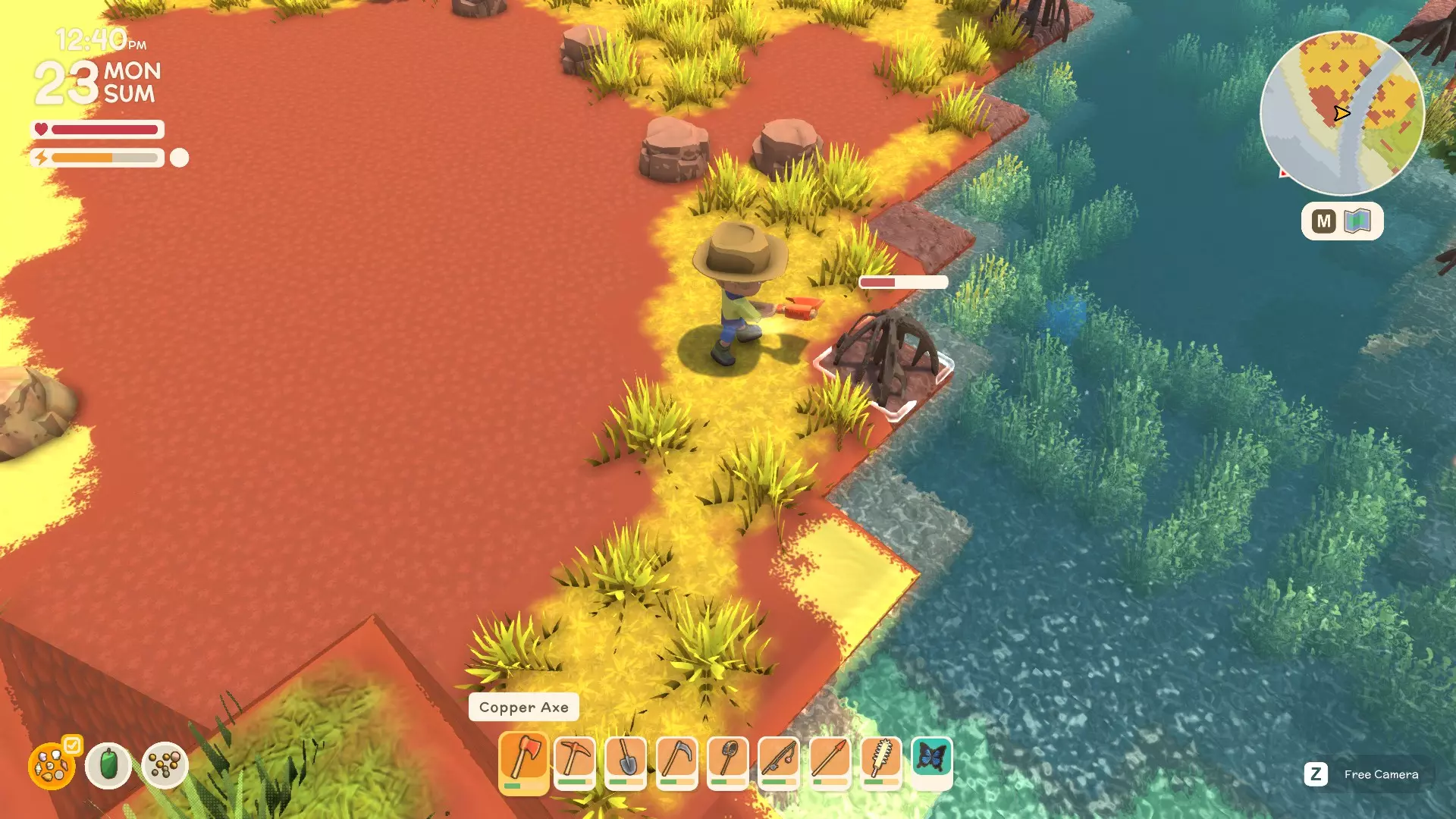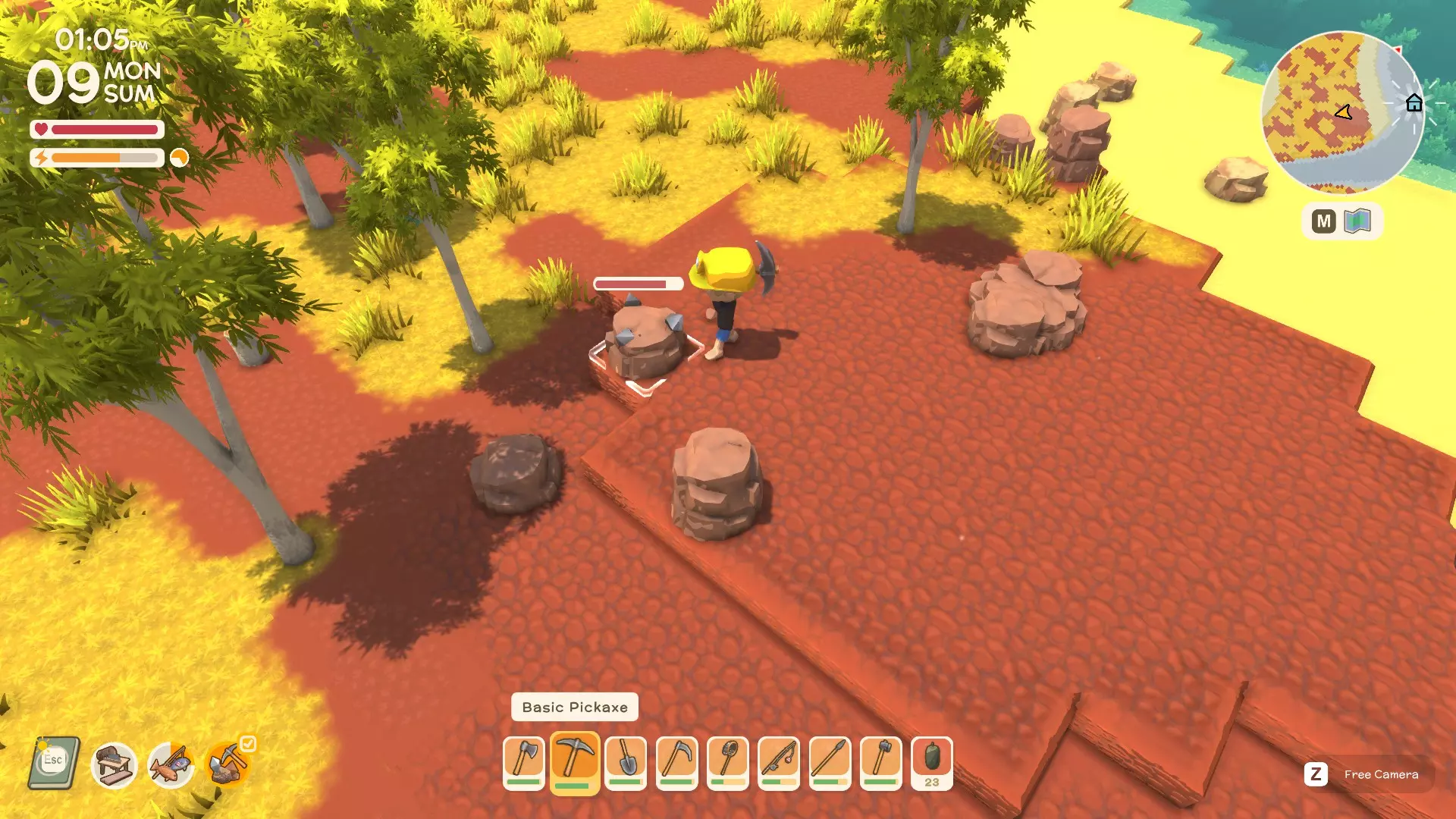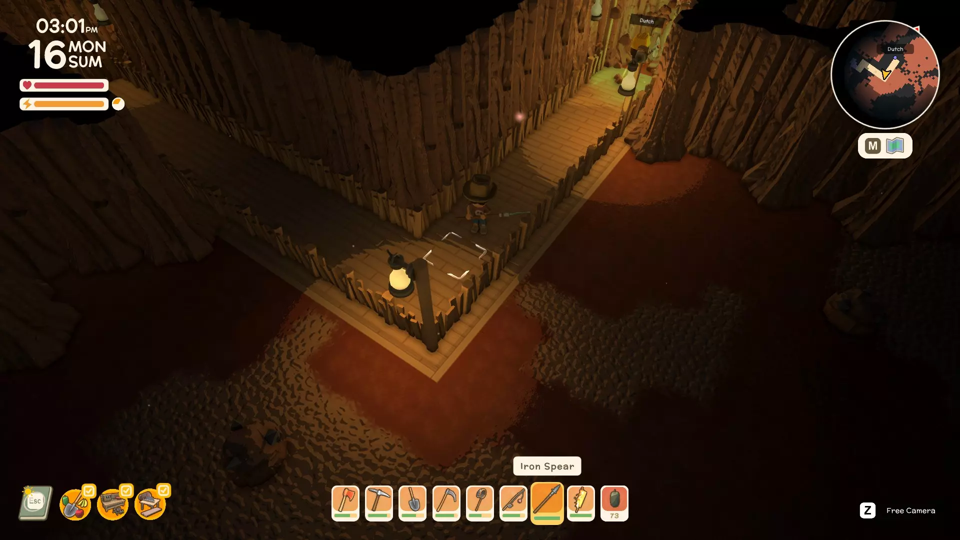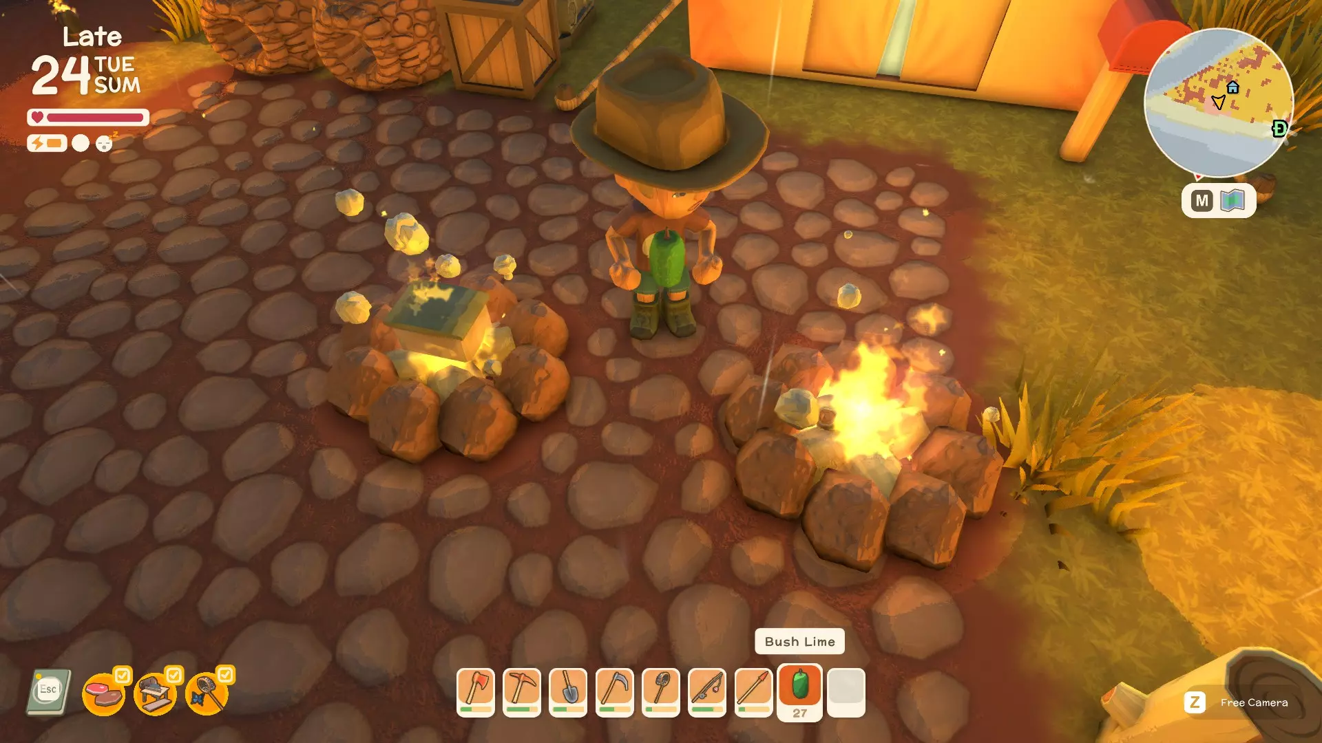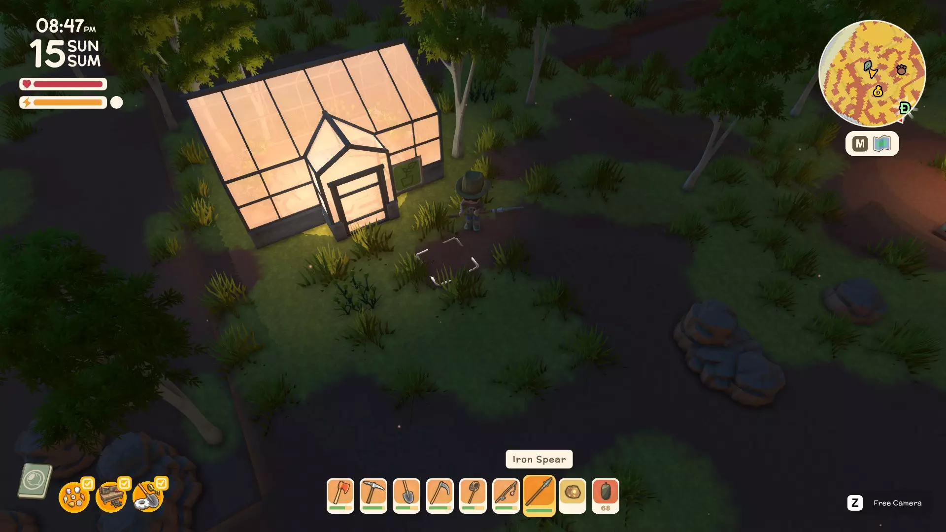 使用镐子采矿! 基础镐 - 可开采小型石头、铁矿、铜矿、石英晶体矿点以及木桶。 铜镐 - 可开采上述所有资源,还包括大型灰色岩石构造(这些可产出锡、铁、石头、铜、石英)。 用镐子获取骨头! 用捕虫网捕捉虫子!希望本指南对你有所帮助,祝你度过愉快的一天! 用长矛狩猎! 用镰刀收集草籽! 镰刀拥有3格宽的攻击范围,使用时要充分利用这一点,让每一次挥舞都发挥最大效果。这在清理你想要建造的区域并使其看起来整洁时非常有用。 例如:如果你挥舞100次,你是想击中100个目标,还是300个?所以要充分利用镰刀的耐久度。使用镰刀采集三齿稃丛! 制作三齿稃树脂! 在熔炉中熔炼矿石! 你可以在熔炉中熔炼(熔化)矿石(锡、铜等)以获得金属锭,但需要将矿石放入快捷栏,然后走到熔炉旁,逐个将矿石放入熔炉中。矿石需要一分钟左右才能熔炼成金属锭,因此请耐心等待。 对于其他矿石,你需要从约翰的商店购买升级后的熔炉才能进行熔炼。希望本指南对你有所帮助,祝你度过愉快的一天! 采矿头盔 - 全面解析!(更新中) 采矿头盔 - 电量有限,但能提供光源,让你在夜间看得更清楚。注意合理使用灯光,避免电量浪费。