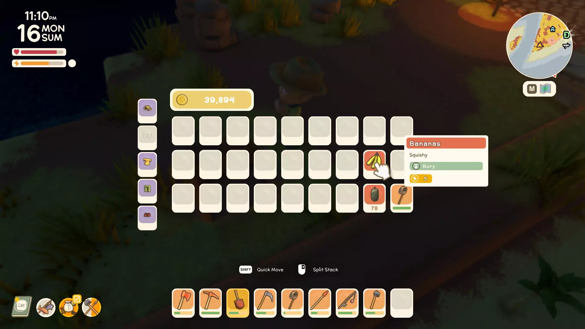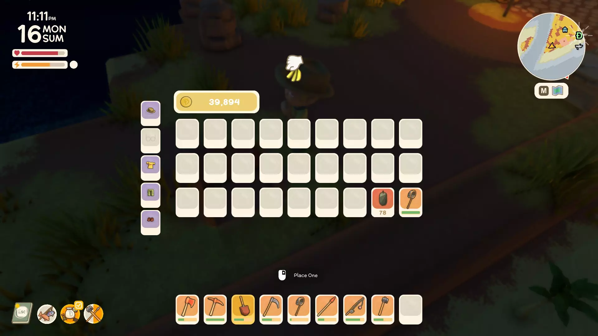 现在前往你的物品栏,选择一个物品并将其拖放到你挖好的洞里进行掩埋。