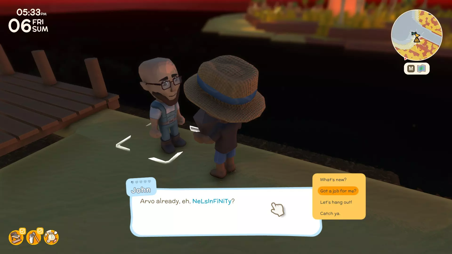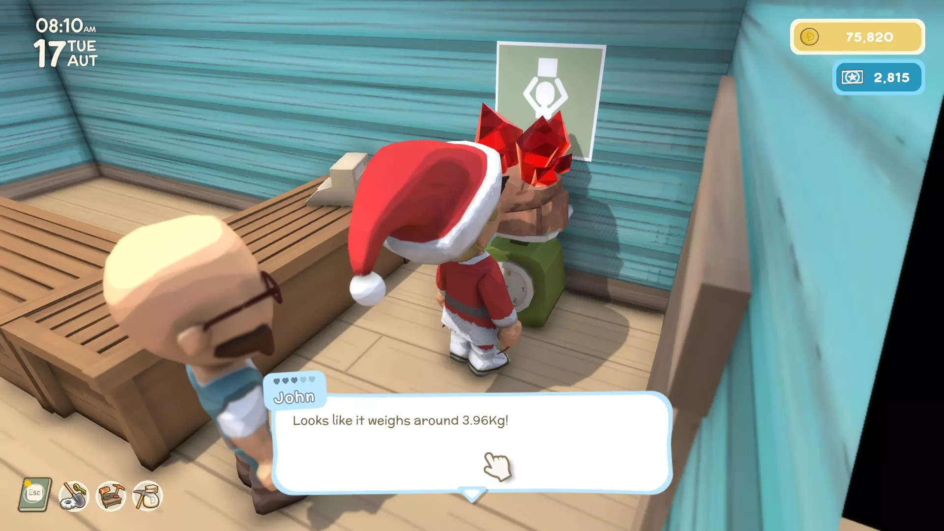- 约翰的商品店主 - 营业时间:8点至16点,周日休息 - 与约翰进行物品买卖 - 为约翰执行个人任务 - 讨厌:酸橙、熟苹果、澳洲坚果 - 喜欢:熟肉、熟鳄鱼肉