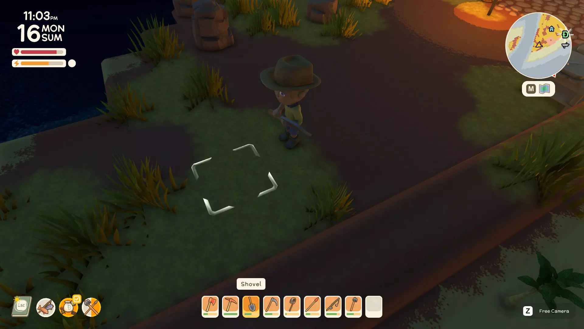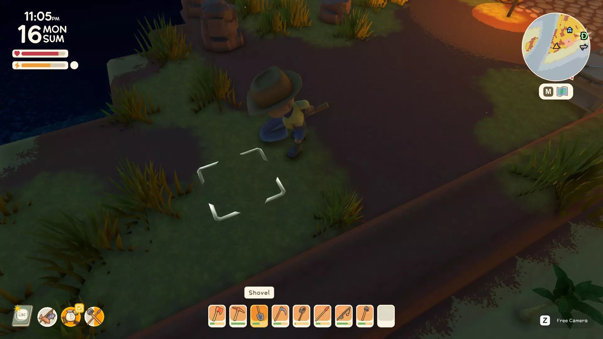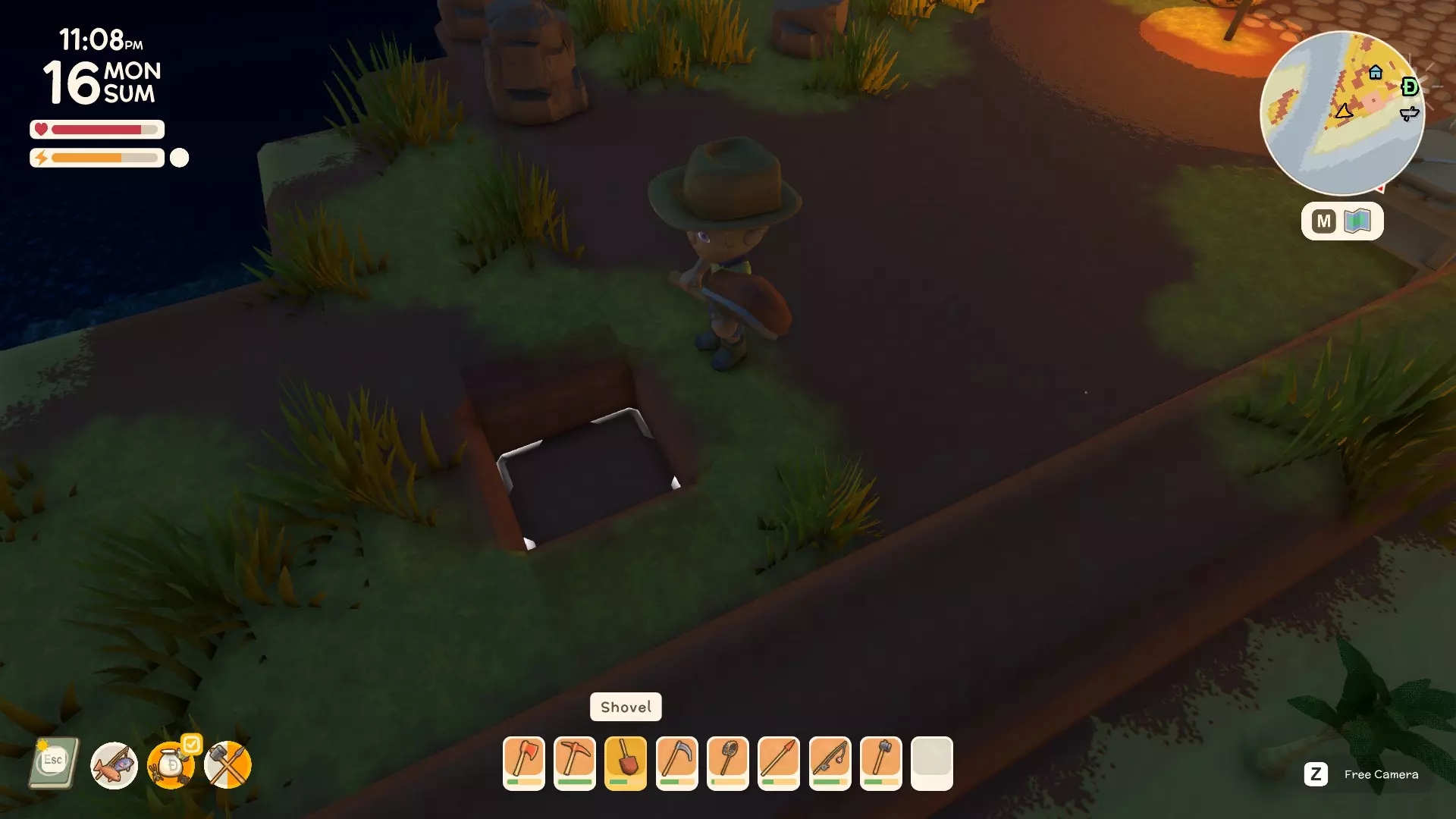 然后在快捷栏中装备好铲子,在地面上挖第一个洞。
