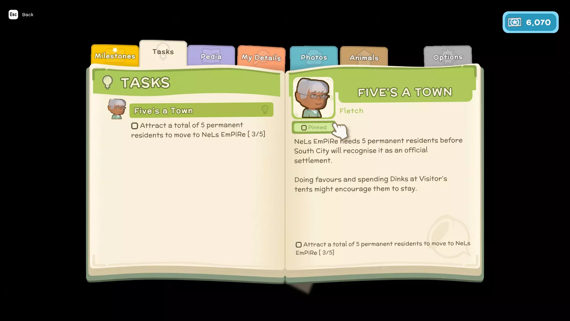 - 基地帐篷/市政厅所有者 - 工作时间:8点至16点 - 建设城镇的主线任务 - 向弗莱奇购买许可证 - 为弗莱奇执行人事工作 - 讨厌:肉类 - 喜欢:灌木酸橙
