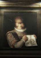 词语#02:妻子的草图 继续前进,直到到达画像走廊,走廊两侧有许多画作。在走到尽头之前,其中一幅画会掉落并竖起来,拿起它将其放倒,就能看到背面贴着的草图。