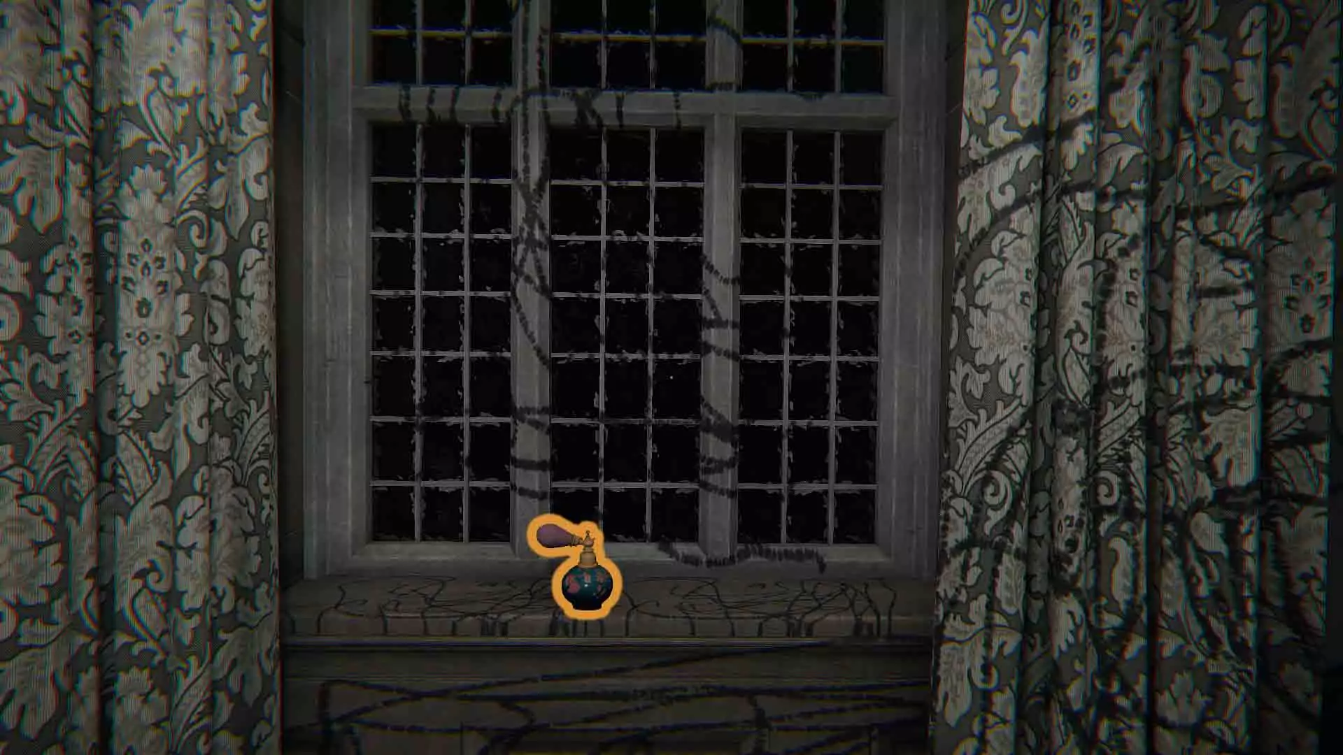 第25个词:项链 离开通灵板房间后,你到达的第二个走廊就是图片中的样子。查看你左手边的窗台。