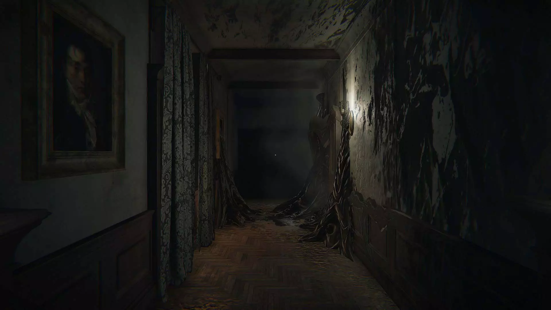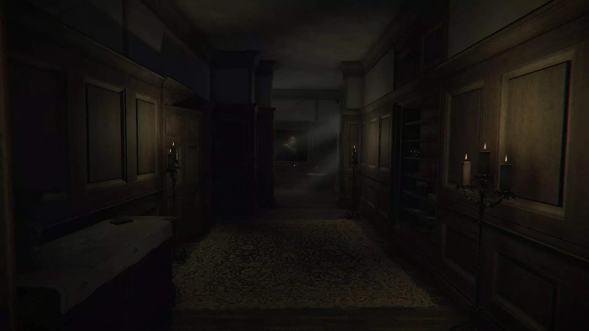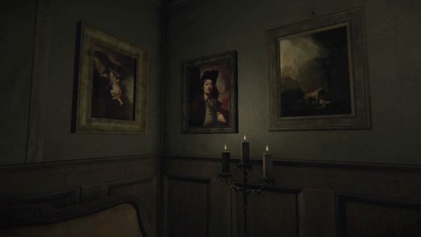 图画#01:肮脏的怪诞虫子 穿过写有“永不忘记”的门后,沿着走廊走到拐角处,进入第一张图片中你看到的客厅。走到玩偶的“画像”前,当你处于黑暗中且需要走向第二张图片中的蜡烛时,看向墙壁之间。