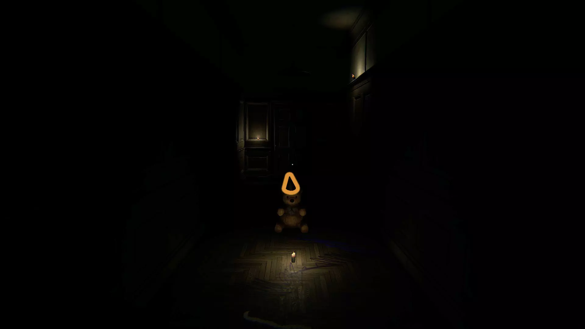 单词#12:生日帽 走出房门,转过走廊的拐角,你会看到远处有一个毛绒熊,它面前有一根蜡烛。走向它,拿起它的五岁生日帽。