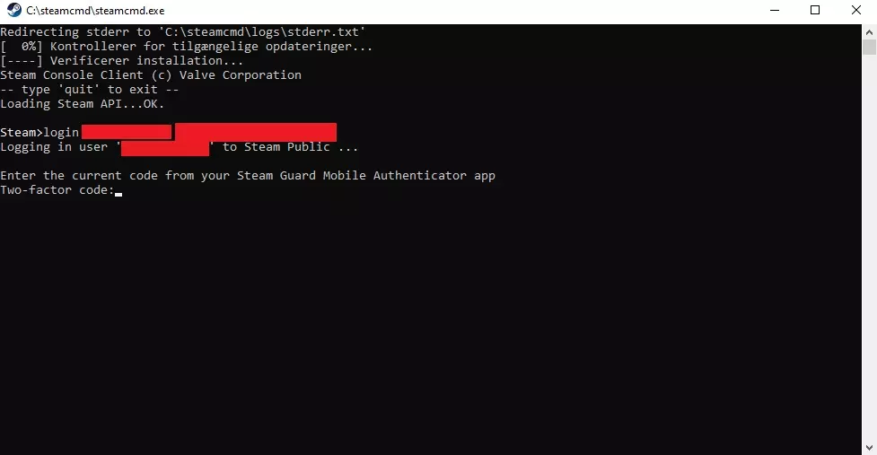 - 创建空文件夹后,下载SteamCMD。 - 将“steamcmd.exe”解压到你刚在C盘创建的SteamCMD文件夹中。 步骤2:启动并登录SteamCMD 【启动SteamCMD前请退出Steam】 - 启动你刚解压到C盘SteamCMD文件夹中的“steamcmd.exe”,它将开始更新。 - 更新完成后,需要使用你的Steam账号登录,输入“login 你的用户名 你的密码”。 - 如果你开启了双重验证,系统会要求输入Steam令牌验证码,在你的邮箱或Steam令牌应用中找到并输入。