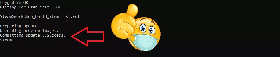 步骤7:上传.vdf文件(缩略图) 最后一步是通过SteamCMD上传.vdf文件。 为此,我们需要将以下命令行粘贴到SteamCMD命令提示符中。 但在操作前,请记得将“test.vdf”替换为你为该文件设置的名称。 workshop_build_item test.vdf 粘贴命令并按回车键后,你应该会看到以下内容: