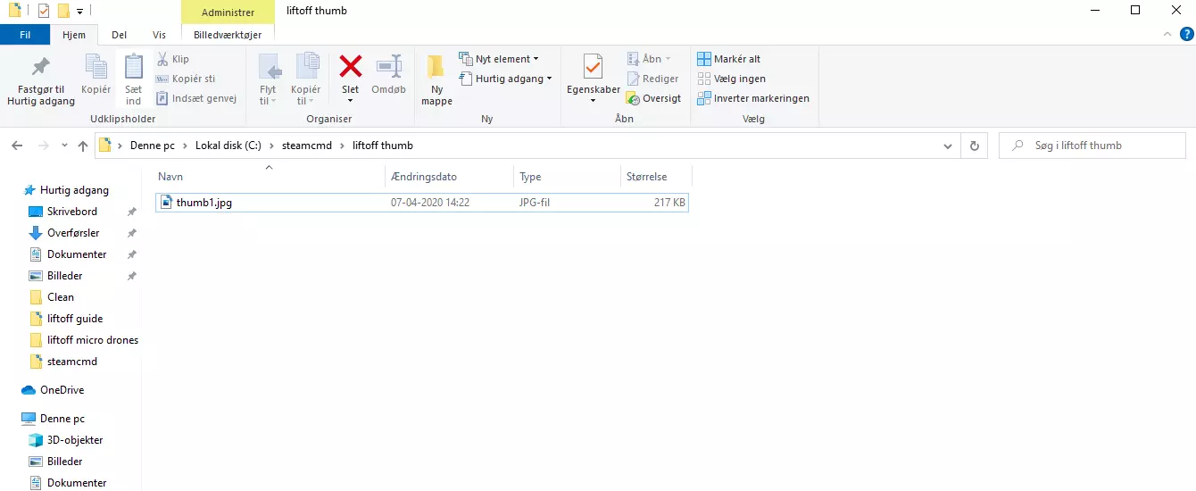 现在编辑文档中的【publishedfileid】,使其与你在Steam创意工坊中的项目相匹配。 最后一步是填写你想要上传的缩略图路径。 Steam建议使用640x360像素的jpg、png或gif格式缩略图,文件大小最大为1MB。 我在SteamCMD文件夹内新建了一个缩略图文件夹,并将我的缩略图保存为【thumb1.jpg】。 编辑【test】文本文档,将【previewfile】路径修改为你存放缩略图的位置。 例如,我的路径是【C: steamcmd liftoff thumb thumb1.jpg】。