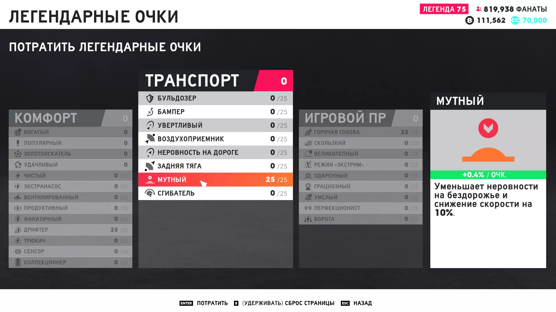 它的作用是让我们在一次游戏进程中(在25级技能点时)通过氮气加速可以多获得40-60个追随者。 从【运输】菜单中,升级【污浊】技能点。