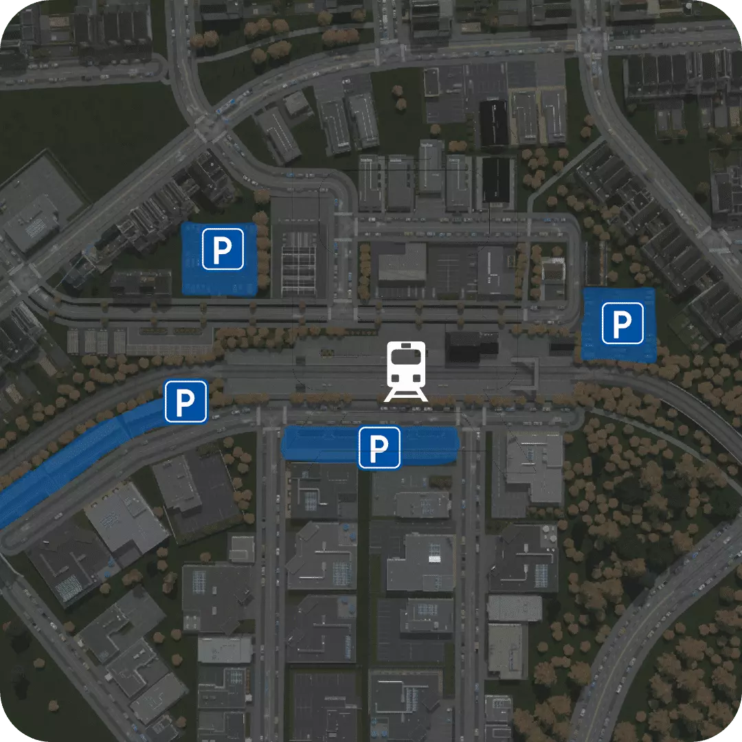图像 ©2024 Airbus,地图数据 ©2024 Google 这个火车站周围有很多停车位。这在世界各地郊区的火车站很常见。但离首都越近,每个火车站的停车位就越少。 这在【城市:天际线】中同样适用。