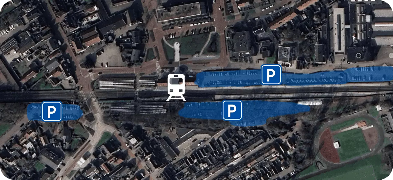 你可能会觉得,出于这样或那样的原因,你想在一个地方集中设置大量停车位。但你应该避免这种做法。每一辆停在停车位上的车都需要到达那里。如果你把停车场建在一起,成百上千的车辆会在那里进出,这会造成严重的交通拥堵。 你应该尽量分散设置停车位。不要在繁忙区域设置停车位,因为这会给这些区域带来更多交通流量。试着在城市各处分散设置停车位,并确保你的道路能够应对这些额外的交通。 把车停在城外,然后乘坐公共交通进城。正如前面提到的,现实中的城市通常会限制市中心的停车位,这样人们就不得不把车停在城外,然后乘坐公共交通进城。阿姆斯特丹及其周边郊区就是一个很好的例子。让我们来看看荷兰中等城市尼杰尔科克的火车站。