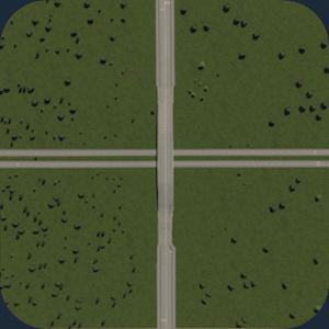 如果车辆想从“入口匝道”汇入高速公路,就必须保持与高速公路相同的速度。否则,车辆在汇入后没有足够时间加速,将无法顺利进入高速公路。 你需要在互通式立交处设置“加速车道”,让车辆在汇入高速公路前达到高速行驶速度。 当高速公路设有出口匝道时,你还需要设置“减速车道”。否则车辆会直接在高速公路上刹车,而不是在匝道上,这会拖慢后方所有车辆的通行速度。 明智地设计交叉路口:主要有两种高速公路互通式立交,分别是菱形立交和部分苜蓿叶形立交。这两种在现实生活中最为常见,建议优先使用。但你需要仔细选择使用哪种互通式立交,因为所有立交的交通处理方式都不同。 (左:菱形立交。右:部分苜蓿叶形立交)