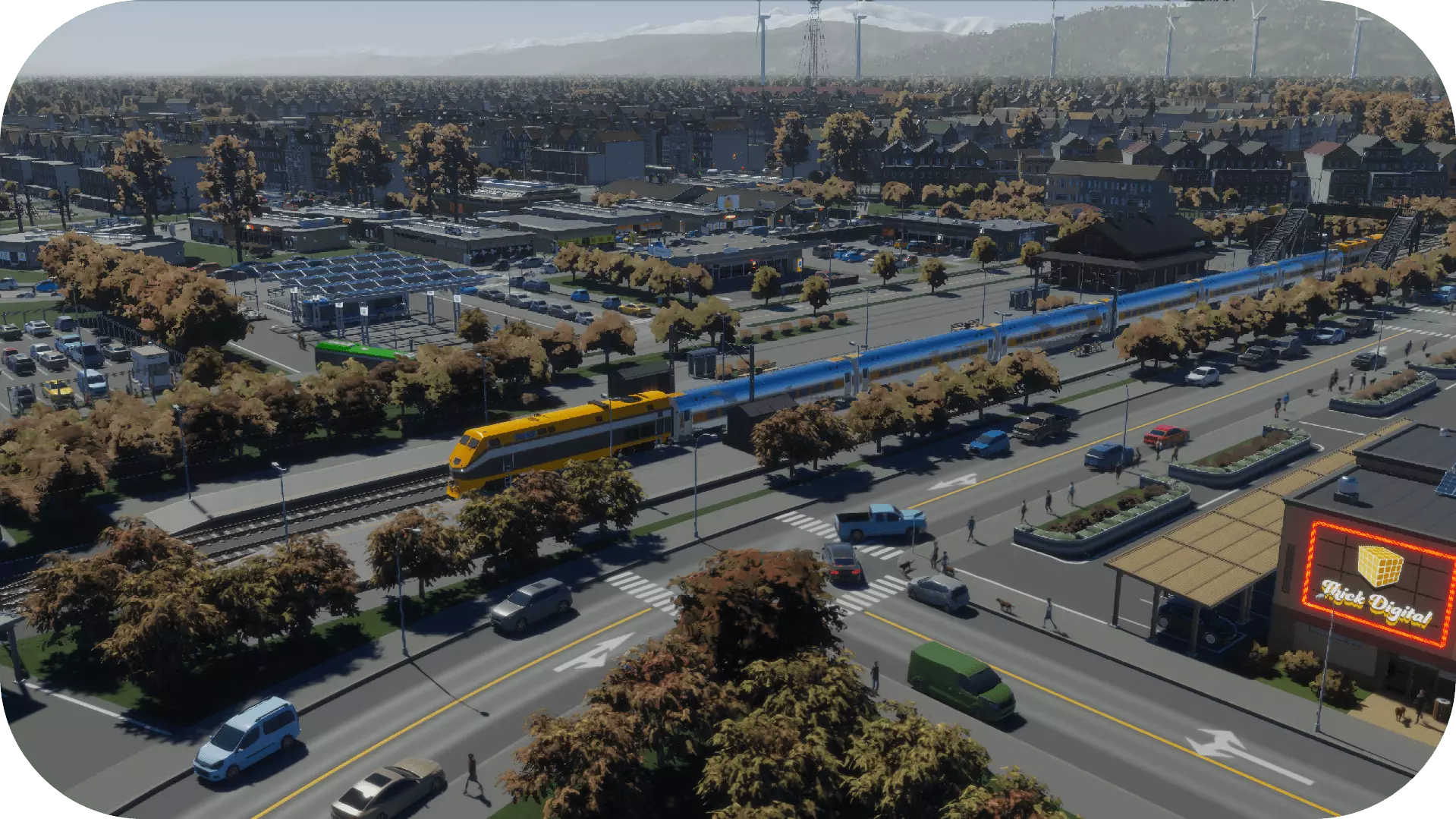 所以,记得在你拥有的任何乡村火车站附近和/或周围设置停车位。在右侧,你可以看到我在其中一个火车站的做法。 不要过度设置。火车站周围仍然需要商业区,因为那里有大量的消费者。所以要在商业区和停车位之间找到良好的平衡。 “兄弟,再来一条车道就好!”