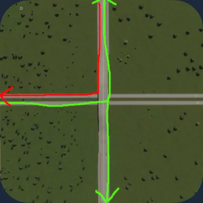 创作者:krzychu124 这是一个允许在交叉路口更改车道连接的工具,可根据你的使用场景进行任意调整。 在右下角,有一个此模组可提供帮助的实用场景。如果车辆从左侧驶来并想要驶入顶部道路,在等待通行间隙时会阻塞主路上的大部分交通。 只需选择节点并禁止左转,交通将会更加顺畅。