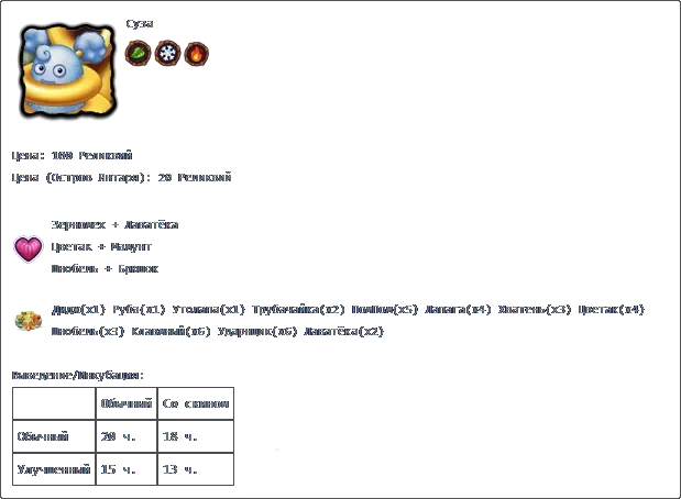 达到15级后可从寒冷岛传送 产出: 普通 带皮肤 普通 1天12小时 1天8小时24分钟 改良 1天3小时 23小时24分钟 仅在爱情季期间可用(约2月1日-2月20日)