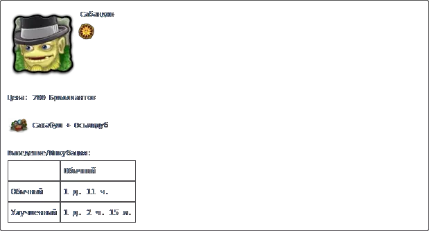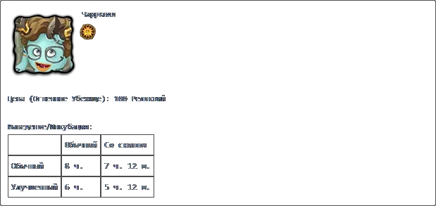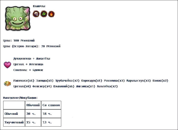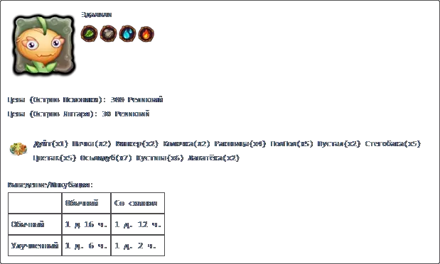 价格:17,000货币 填写时间:7天 【Хорамень】×4 【Избалолист】×4 【Гупка】×6 【Маракастук】×6 【Раковица】×4 【Зерномех】×8 【Барабамень】×6