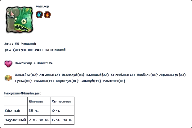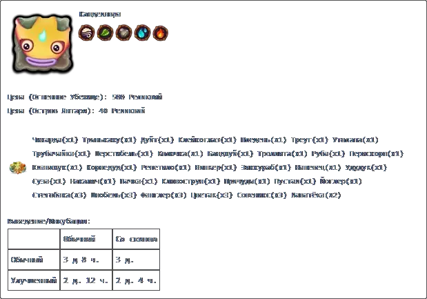 价格:17,000货币 填写时间:3天 Хорамень×3、Избалолист×3、Тумпы×4、Лапага×4、Лягашка×12
