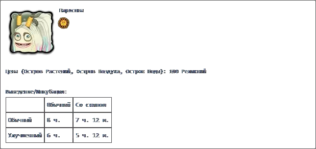 毯子+乌舍莫尔 毯子+特罗利塔 毯子+克拉维朱克 产出: 普通 带皮肤 普通 1天10小时 1天6小时36分钟 升级版 1天1小时30分钟 22小时6分钟 轮盘: 价格 成功 失败 100星星 1天10小时 22小时 主活动:莫斯科时间6:00至20:00(普通岛屿) 副活动:莫斯科时间18:00至次日8:00(镜像岛屿)