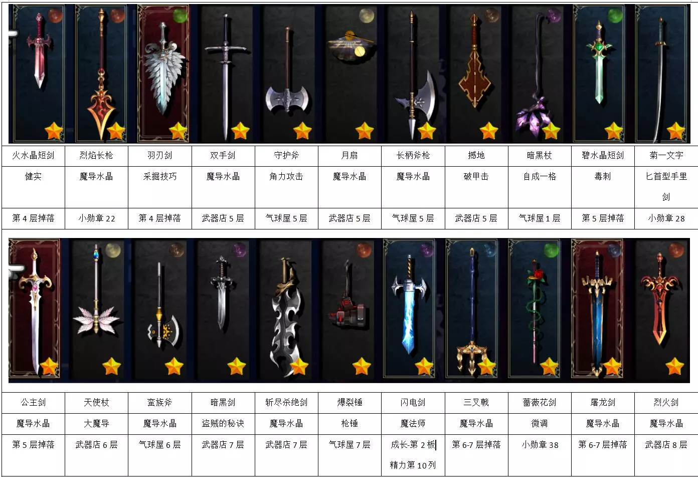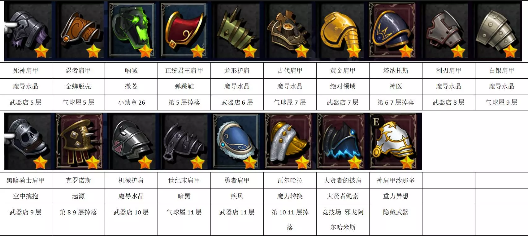 该指南旨在帮助大家完成隐藏装备收集和全泊灵技能收集成就,不包含饰品。 写在最前: 本作武器装备主要来源为:武器店兑换、洞窟内气球屋兑换、成长宝箱、洞窟内随机掉落、竞技场奖励、会长收集奖励,还有一些隐藏武器。本文核心内容为隐藏武器的收集。 全装备列表及获取方法: 四列分别为:图像-名称-精通获取-获得方法。可打开装备页面对照查询缺失装备(不含饰品)。