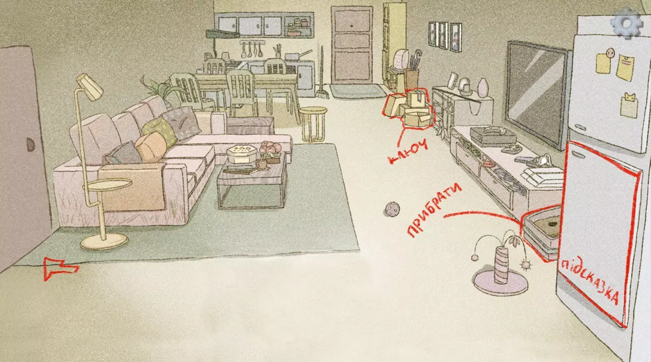如此接近,如此遥远 爱·距离 爱·侦探: 开始新游戏:爱·侦探; 尝试使用电话; 有人会拨打另一部电话,点击它; “询问他”或“什么也不说”; 我们的故事就此开始: 在盒子里寻找,会找到我们之后需要的钥匙; 查看冰箱内部,那里会有带有密码的提示盘:(584); 前往主人的房间,那里左侧;★ 在垃圾桶中搜索3次,可获得成就Scarb серед сміття