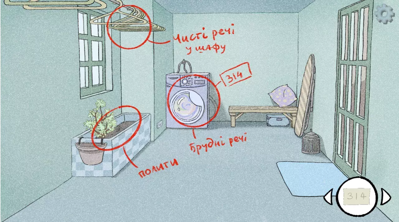 垃圾中的宝藏 爱情 • 侦探 ★ 在房间里拿起需要放进洗衣机的脏衣服; ★ 在衣柜旁边的抽屉里,我们看到一个锁着的盒子,这里可以用我们之前找到的钥匙; ★ 打开它。里面什么都没有,但我们得到了一个新密码:【201】。★前往左侧的洗衣房; ★将脏衣服放入洗衣机,点击洗衣机,获取最后一个代码:【314】; ★给花浇水; ★取出干净干燥的衣物并放入衣柜。