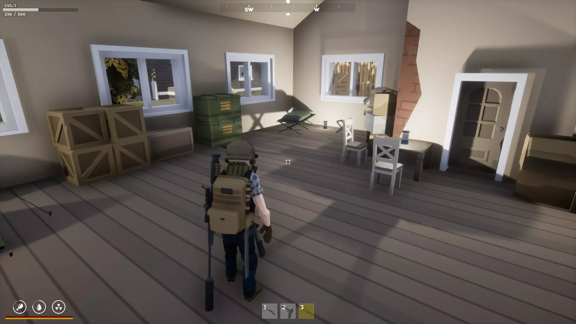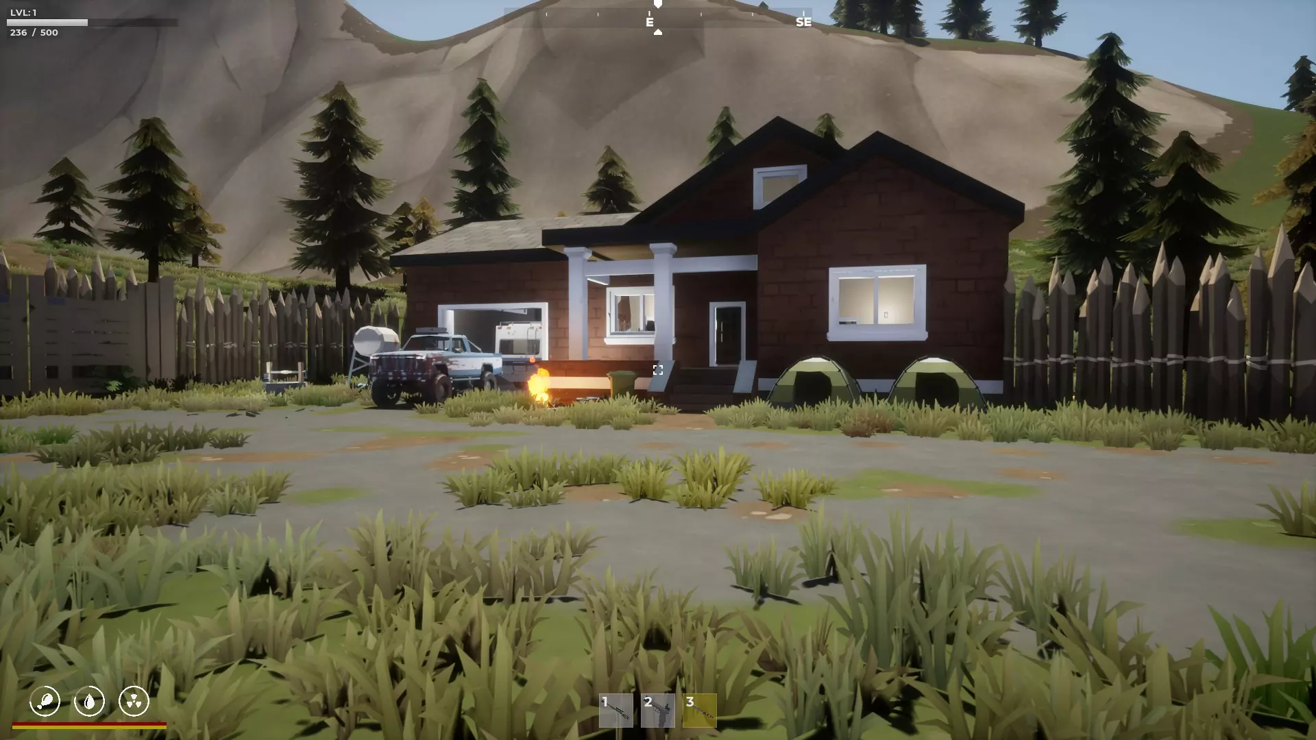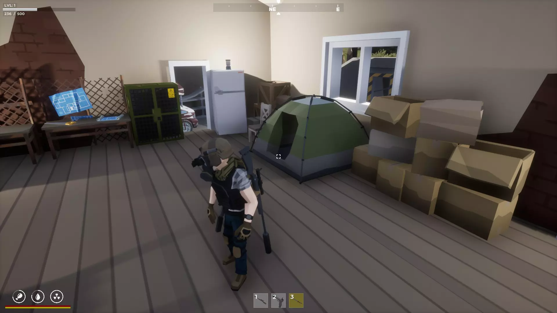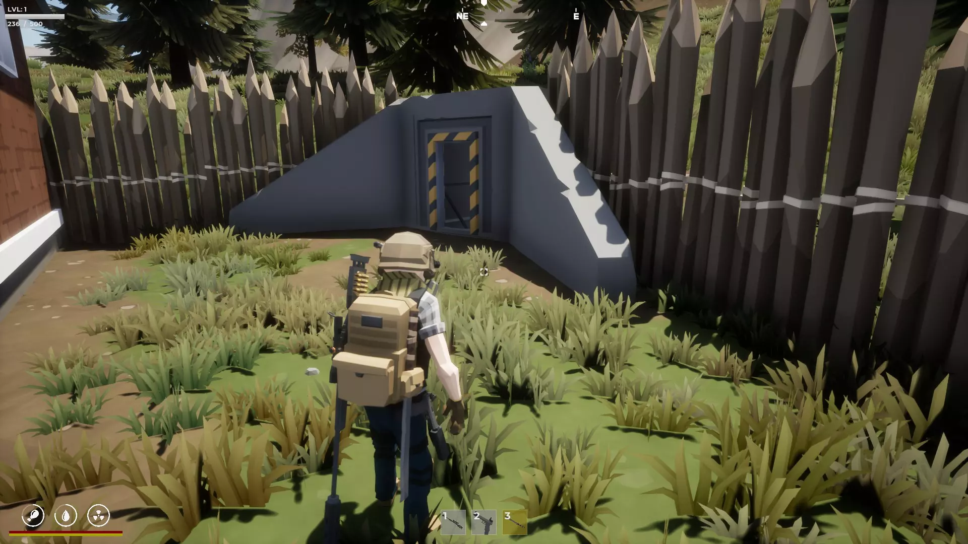 大房子用于存放一些物品,房子附近有一个空掩体