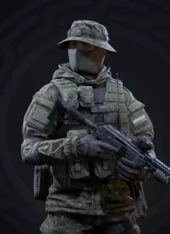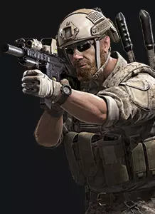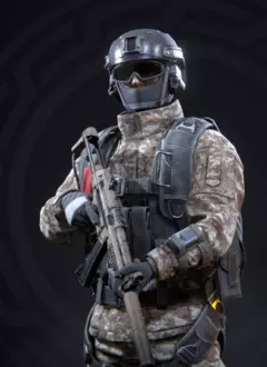 优点: - 在其他突击兵中拥有最高的每秒伤害(不包括先锋,其使用霰弹枪) - 良好的穿甲能力 - 在玩家对战中表现出色 - 极佳的射速 - 武器后坐力小 - 当干员达到12级时,可以获得持续射击时隐身的技能 - 其自身的技能不让敌人使用他们的技能。现在这名干员的缺点:远距离伤害大幅下降,这也是他的技能特点。如果敌人在你击中他之前已经承受了大量伤害,你的技能将对其无效。 在PVE中表现非常一般。 在略远于中等距离的情况下使用体验不佳。 干员——海盗 海豹突击队突击手(代号海盗)——隶属于北美特种部队。 装备Mk 18 Mod 1突击步枪和Mk 25手枪。特殊装备为C-4塑胶炸药。
