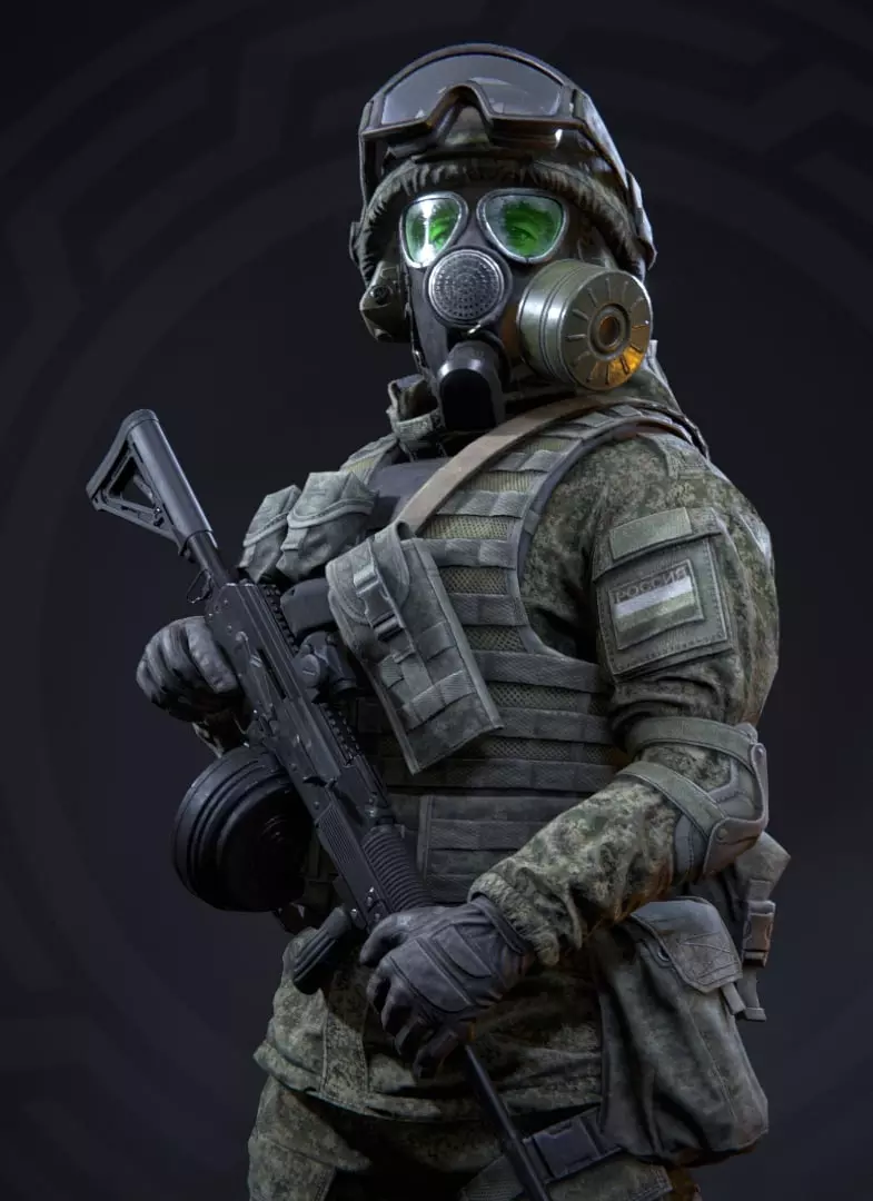 优点:在PvP和PvE中表现出色,几乎是支援型角色中伤害最高的;拥有实用的技能(为干员提供护盾,可复活倒下的队友);具备良好的穿透力;射速不错。 缺点:技能消耗大量耐力;干员升级速度慢;奔跑时耐力消耗很大。 干员【斯瓦罗格】:阿尔法小队支援型干员(代号斯瓦罗格),隶属于俄罗斯阿尔法特种部队。装备PKP-M机枪和Glock 17 Gen4手枪。特殊装备为GM-94破片榴弹发射器。 斯瓦罗格是个多面手。他的伤害中等,但射击精度极高,其技能能够压制敌人,使其无法进行精准还击。对于被压制的敌人,斯瓦罗格的榴弹发射器备有大量破片弹药。