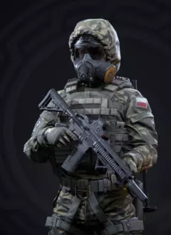 优点: 在PvP和PvE中表现都很舒适 拥有相当实用的装备量 是支援型角色中速度最快的 特殊道具很有用 手枪表现不错 在中远距离表现良好 缺点: 非常消耗耐力 射速有待提高 对躯干伤害较低 职业 - 医疗兵 干员 – 卡拉瓦伊 卡拉瓦伊是俄罗斯22特别用途旅的医疗兵。装备有改装型AKS-74U突击步枪和GSh-18手枪。特殊装备为RDG烟雾手榴弹。