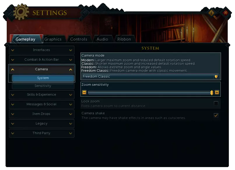 切换你的相机模式。【自由】相机模式提供更远的缩放范围。自由经典模式拥有所有相机模式中最远的缩放范围,但会移除跟随延迟,而该延迟能让移动时的相机运动感觉更流畅。在此处将你的缩放灵敏度调至最高。