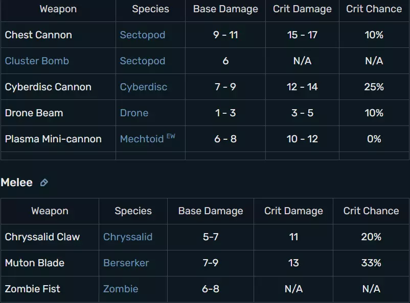 这种敌人仅在UFO任务中出现,通常位于飞船的控制室/指挥室。在游戏后期,它们会逐渐被更具挑战性的敌人取代。它们的瞄准率相当高,简单和普通难度为70,经典难度为80,不可能难度为90。它们的暴击率与之前的外星人相同,生命值在简单/普通难度下为3,经典/不可能难度下为5。所有难度下的移动力均为12,但不可能难度下为17,意志力在所有难度中均为20。【外来者】配备轻型等离子步枪,唯一的技能是压制。 【 Chrysailds 】 这个小东西简直是纯粹的麻烦,在游戏早期/中期极其危险,即使在后期也需要留意。这种会给你和你的士兵带来纯粹创伤后应激障碍(PSTD)的生物是抱脸虫(chryssaild)