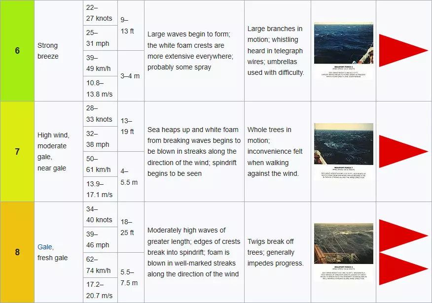 当切换姿态(趴下、蹲下或站立)时,使用【Kestrel】会发现风速有所不同。显然,姿态越低,风速就会下降越多。以下是用不同颜色展示风速的表格(基于蒲福风级)。