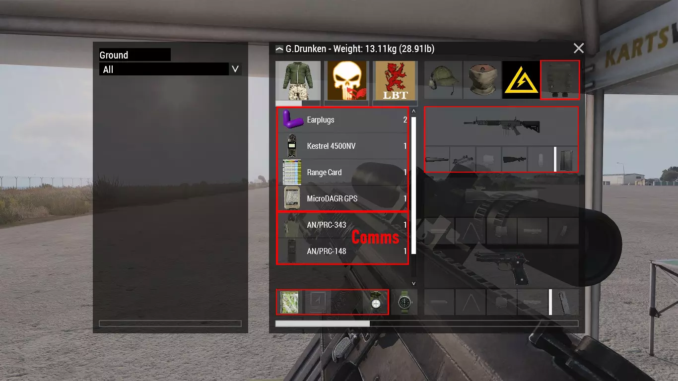 1.1 - 安装设置 关于模组,你需要以下内容: CBA_A3 - 社区基础插件 ACE3 - 高级战斗环境 其他模组 - 90%的公开ACE服务器的常规要求,不过相当不错! RHSAFRF - Red Hammer Studios - 俄罗斯联邦武装力量 RHSUSAF - Red Hammer Studios - 美国武装力量 RHSSAF - Red Hammer Studios - 塞尔维亚武装力量ACE兼容性补丁 你可以添加包含各种不同武器的任何模组,这没有问题,但它们需要与ACE3本身兼容。你不能期望弹道系统能在你使用的非ACE3兼容枪械上正常工作。本指南中使用的RHS模组以及《武装突袭3》的原版武器均兼容。 基本就是这样了。 1.2 - 装备 本节包含你需要的必要装备。 在出发前,你应该配备能让你在更远距离作战的合适装备,这会让你在战场上与队友一起更具价值和效率。一名射手单位应配备以下物品: - 耳塞 - 射程卡 - Kestrel 4500NV(风速计) - 地图和指南针 - GPS(原版或microDAGR GPS均可) - Vector 21B Nite或M151观察镜 - 用于短程和远程通信的设备 - 自选步枪