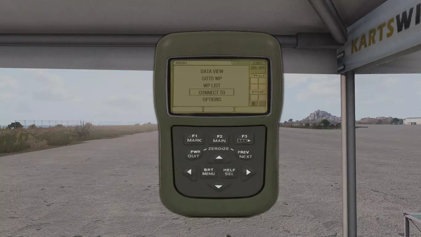 双击Home键打开DAGR,你会看到这个界面。使用设备上的箭头键进行导航,持续按向下箭头直到看到【连接至】选项。按下【帮助选择】按钮。