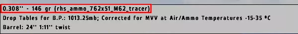 你总是从右到左处理数字,也就是说:小数点右边的两位数字最为重要。如果数字是0.189,那么我们将其锁定为0.2。如果数字是0.592,那么我们将其锁定为0.6。这是正确的做法。[0.592][0.6<<]以下是距离和风偏归零锁定的示例:0.1>0,0.2>0,0.3>0,0.4>0,0.5>0,0.6>1,0.7>1,0.8>1,0.9>1,1.0>1。再次说明,0.5是区分0和1的中间值。射击术全是关于数字的。有了正确的工具和计算,你会没事的。5.1 - 公式本节主要介绍公式。我将使用的步枪是RHSUSAF M24栓动步枪。弹药类型:曳光弹,更多信息如下。