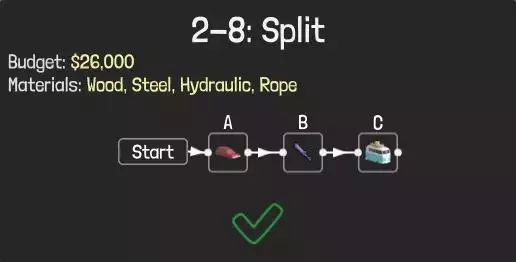 排行榜里仅花72块钱造的桥都是靠砸的…不过现在游戏更新后这一关已经不能用砸的方法了,但这可以作为一种思路用在其他关卡里。 方法6:分离点 (6)分离点真的很好用,强推~! 以2-8关为例,A车行驶,液压器运作一次,C车再行驶。