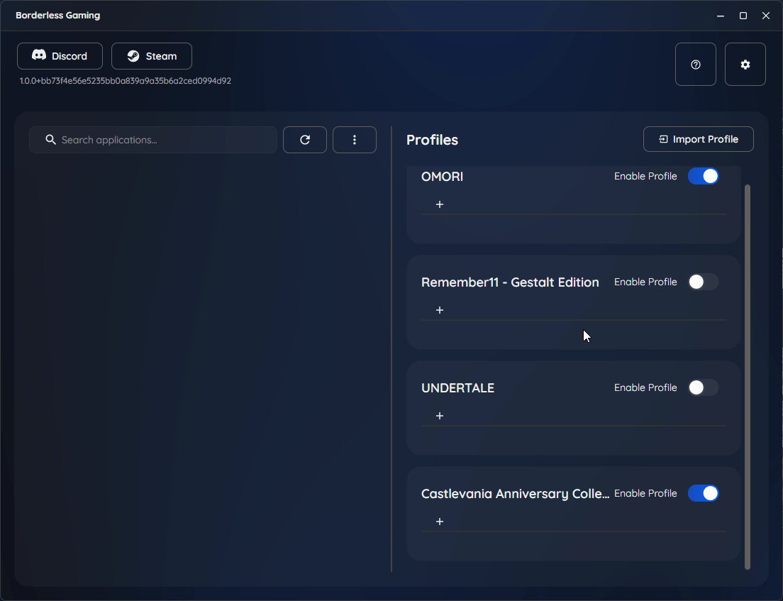 功能描述 配置文件系统 用更强大的配置文件系统取代旧的收藏夹功能。配置文件支持更多自定义选项,包括: - 设置自定义窗口大小 - 移除菜单 - 后台运行时静音游戏 - 隐藏鼠标光标 - 设置自定义背景(颜色、渐变或图像) - 以及更多高级选项 有关这些功能的详细说明和使用方法,请参阅编辑配置文件和高级功能部分。 改进的自动检测 Borderless Gaming 现在能更准确地检测窗口和游戏,减少手动调整操作。 增强的多显示器支持 现在可以选择游戏显示在哪个显示器上,优化多显示器设置体验。 更新的界面 应用程序采用现代化且用户友好的界面,便于导航操作。性能改进 后台优化使《窗口化工具》运行更快、更稳定且更可靠。 容器系统 为游戏窗口添加背景以增强外观和可见性: - 纯色背景,打造简洁外观 - 渐变背景,呈现时尚现代感 - 自定义图片,个性化游戏外观 - 在容器内放大游戏或应用程序,获得更大视野 详情用法和提示请查看应用容器部分。 新旧版本视觉对比 旧版本: