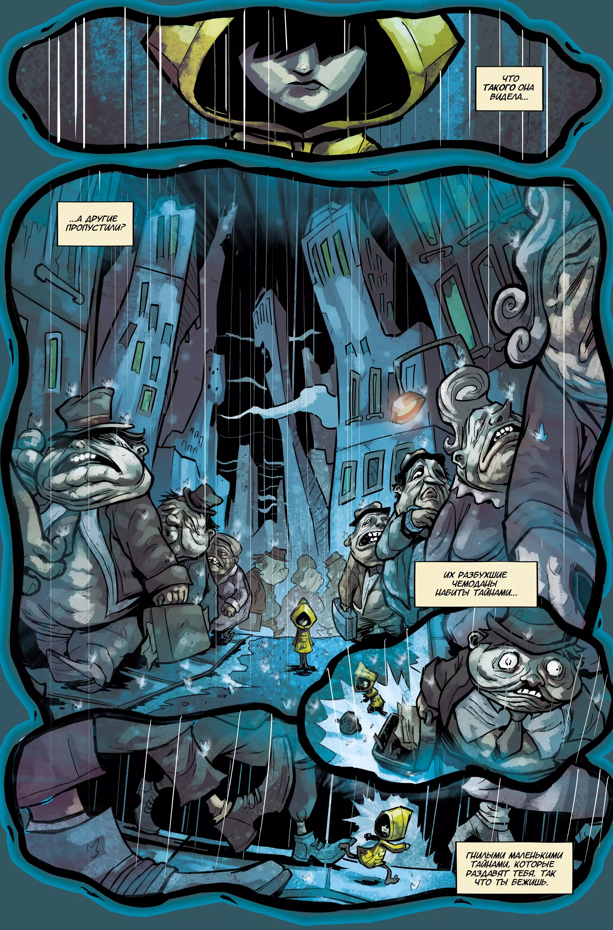在莫诺打碎盒子后,怪物消失了,六姐以我们熟悉的样子出现在我们面前。或许我们最终释放了那个在黄雨衣女孩身上的怪物。游戏的首个预告片也指向了这个盒子,在预告片结尾,我们看到了这个盒子,伴随着我们熟悉的旋律(这首歌似乎能安抚女孩,就像摇篮曲一样,因为第一部中的夫人也哼唱过同样的旋律)。