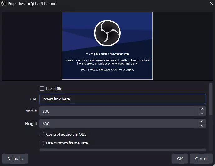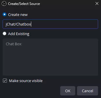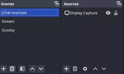 将jChat添加到OBS 现在你只需将jChat媒体链接添加到OBS,就能随意调整聊天框覆盖层的位置。 首先,导航到你想要显示聊天框的场景。