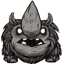 中立的动物怪物。除非处于发情期(臀部发红)或自身及同伴受到攻击,否则不会主动攻击玩家。它们速度很快,攻击力强,可以用来防御狗和其他怪物。注意保护它们,不要让它们灭绝,因为它们能提供大量资源。 掉落物: