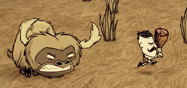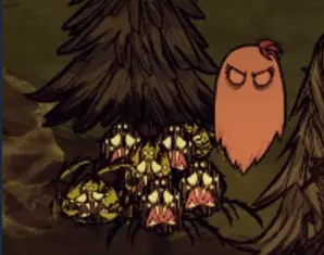 它们是鹿/鹅的幼崽,如果受到任何东西(玩家、青蛙、猎犬等)的攻击,就会开始哭泣,从而召唤鹿/鹅。如果鹿/鹅死亡,幼崽会变成红色并攻击杀死它们母亲的生物。如果凶手是怪物,它们的优先目标会是玩家;如果靠得太近,它们会发动旋风攻击,若未躲避会受到多次伤害,同时附近会落下一道闪电。攻击结束后,幼崽会陷入眩晕状态,你可以在它们恢复前进行攻击。 重要提示:如果没有避雷针,不要将它们带到你的基地。 如何利用环境优势? 只要有可能,就利用环境中的事物为自己创造优势。该怎么做呢?我给你留一份思路清单: 如果有狗过来,而你身边正好有蜘蛛女王在走动,把狗引到那只蜘蛛旁边,过一会儿它们就会互相撕咬起来。 沼泽的触手虽然危险,但也能派上大用场,如果你能让敌人停留在触手的攻击范围内,它们就会被触手吃掉。不过首领除外,比如熊獾就完全相反,它有一种范围攻击能让任何小怪物消失。 秋季首领【巨鹿】可以用来砍树、挖矿、摧毁蜘蛛巢、猪屋等。攻击它然后赶紧跑,它追你的时候会摧毁沿途的一切。击败它之后,你会获得200-500甚至更多的【被摧毁物品】堆叠。 【座狼】(Varg,也常被称为巨狼)可以用来对抗其他首领。它的生命值不高,但伤害非常高,因为它会不断召唤其他狼来协同作战。你也可以用它来搭建一个非常高级的蝴蝶农场。 【眼骨植物】(Lureplant)可以用来搭建树枝、割下的草或其他任何材料的农场。也就是说,这些眼睛会吃掉所有东西并将其堆积在中心,你去搜刮中心就能获得它吃掉的所有东西。处于发情状态的野牛会攻击所有靠近的目标,包括首领级生物。不过,如果首领级生物拥有范围伤害,它们能迅速杀死野牛;也有一些首领级生物不具备范围伤害,例如蜂王。现在你应该思考更多更好的想法,祝你好运!