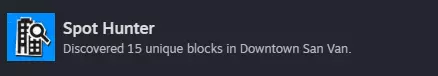 探索地图上的各种地点,例如公园、巨型坡道、教堂。发现15个不同的地点以解锁成就。获取难度:简单