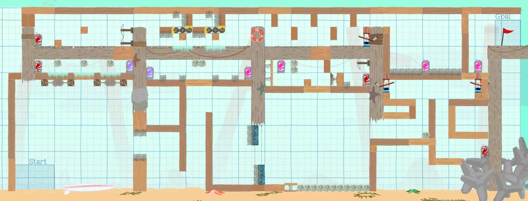 这是一些富有想象力的创作者制作的地图合集。 我们很乐意听取您的反馈。 未来,一旦有新地图制作完成,我们就会添加更多内容。 你能通关这些地图吗?自己试试看吧! 简单难度 ● 瀑布 - YHEN-5ZCM - 制作者:yksen 和 FarmerSA