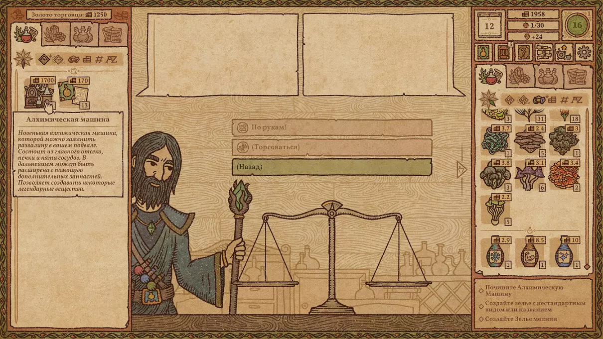 是时候开始炼制了 将炼金机器升级到最高等级 会有巫师定期来找你,向你出售炼金机器的零件