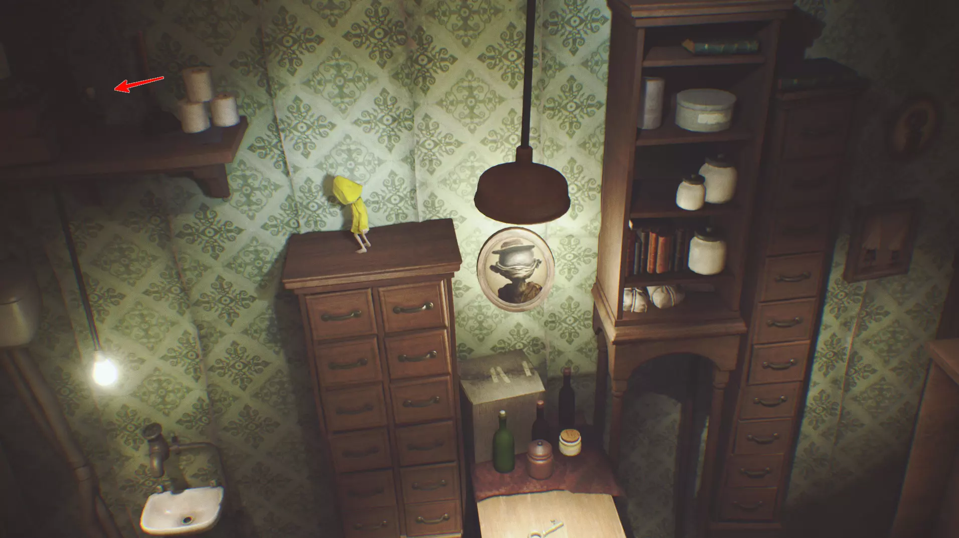 顿悟5:顺着由床单系成的绳子爬上去后,水槽下方有一盏灯。