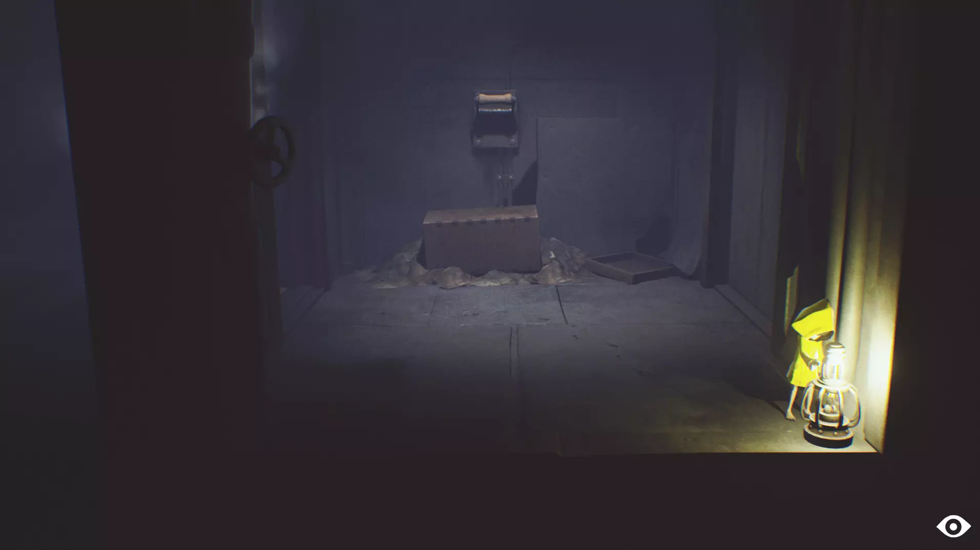 有人在吗?- 5/5 在有手推车的房间里,不要急于立刻把手推车推到斜坡上。先向左推,借助它爬上它上方的架子。