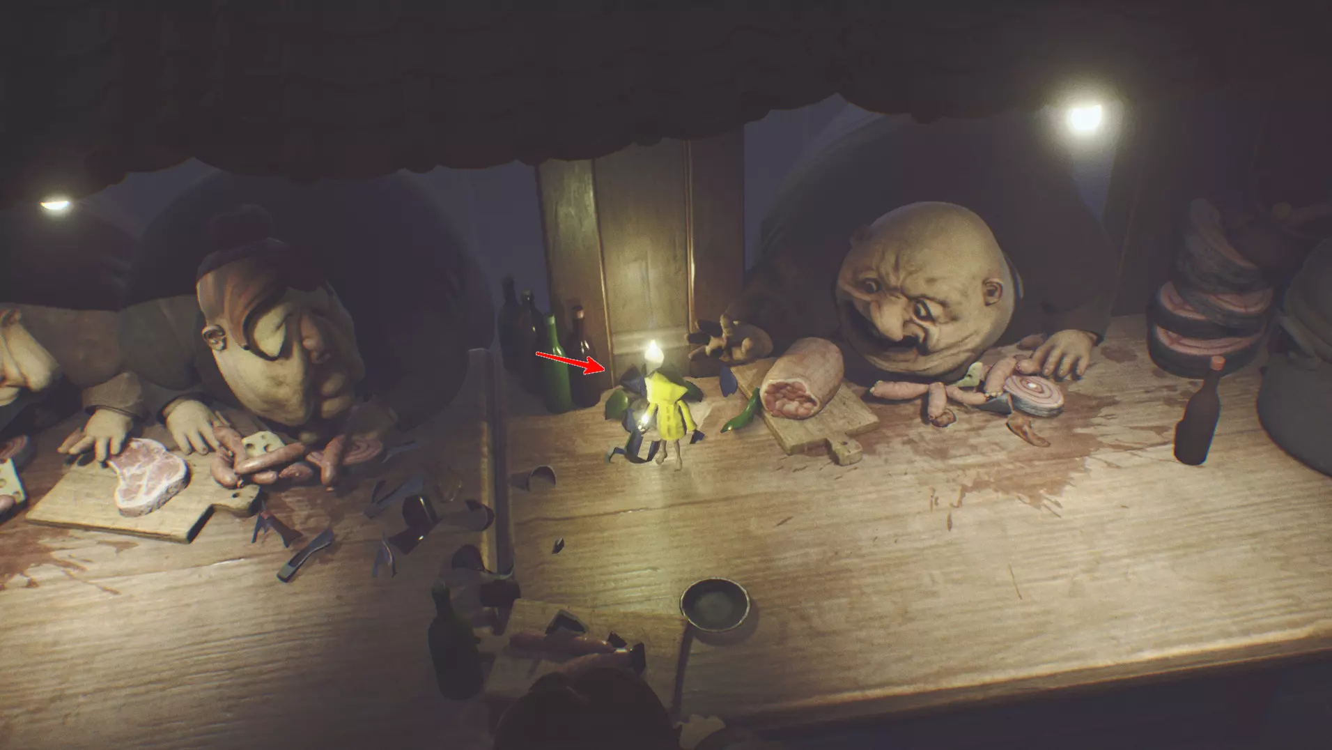 在有第二个厨师的房间里,需要爬上右边的桌子,架子上会有蜡烛。
