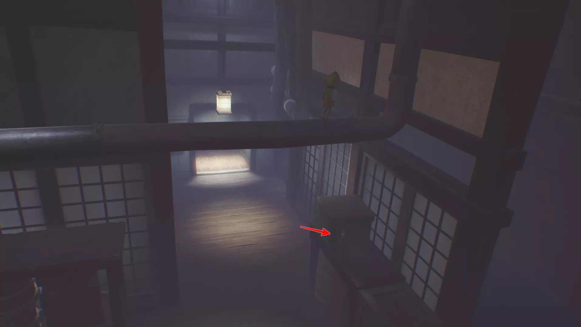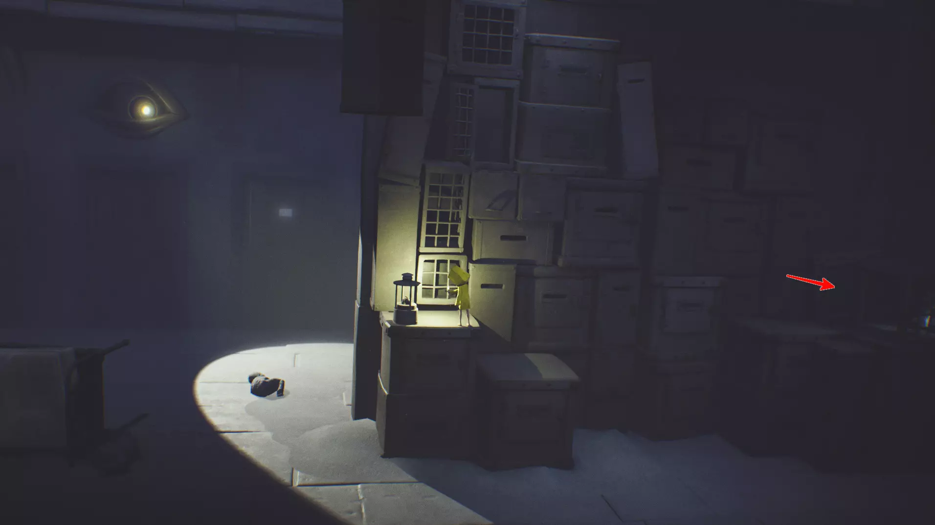 灵光乍现 6,7 迷失的小生物 2/13 通过“全视之眼”后,可以立即找到多个物品。 箱子上有一盏灯。在隐藏房间里也有一盏灯。要进入那里,可以通过带格栅的箱子向上爬,然后向右跳到箱子上,前往箭头标记的位置。