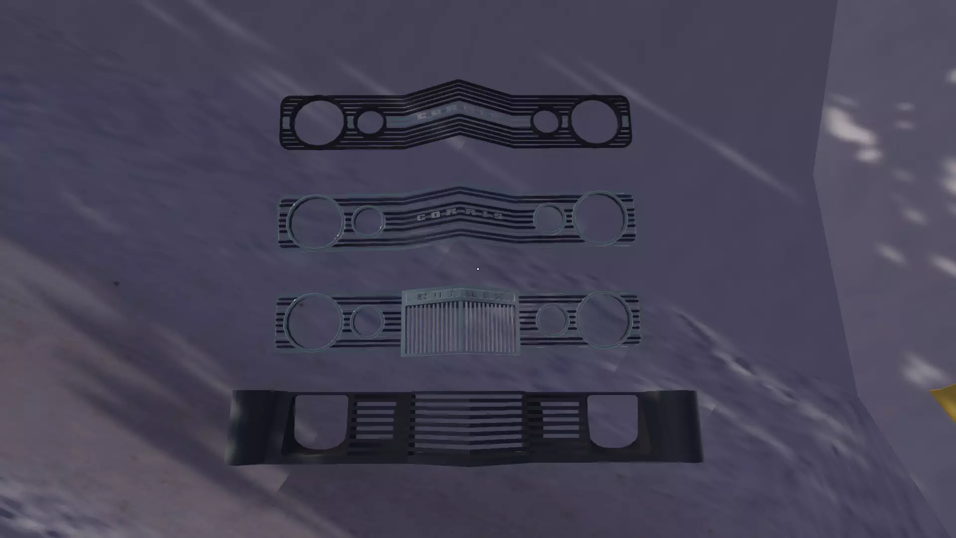 关于车门装饰板的不同款式,请参考我的列表 保险杠/格栅: 后保险杠 镀铬细款(改款前) 前保险杠 镀铬细款(改款前) 后保险杠 5英里款(改款后) 前保险杠 5英里款(改款后) 前保险杠 现代款(GT) 格栅 复古款(SLX) 格栅 塑料款(GT可喷漆) 格栅 镀铬 格栅 镀铬-黑色 前格栅和保险杠